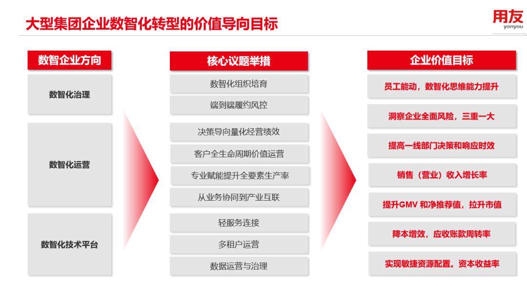 大型企業(yè)數(shù)智化轉(zhuǎn)型會(huì)面對(duì)各種聲音,但用友建議企業(yè)要回歸經(jīng)營(yíng)本質(zhì),從底層的管理邏輯和業(yè)務(wù)邏輯出發(fā),定位自身所處的階段,打造與企業(yè)經(jīng)營(yíng)管理相匹配的數(shù)智化平臺(tái),從而實(shí)現(xiàn)價(jià)值創(chuàng)造。